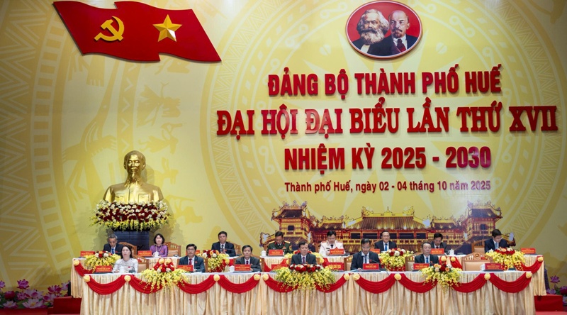 Phiên chính thức của Đại hội đại biểu Đảng bộ thành phố Huế lần thứ XVII, nhiệm kỳ 2025 - 2030 sẽ khai mạc vào lúc 7 giờ 30 phút, ngày 03/10/2025 và được truyền hình trực tiếp trên kênh HueTV