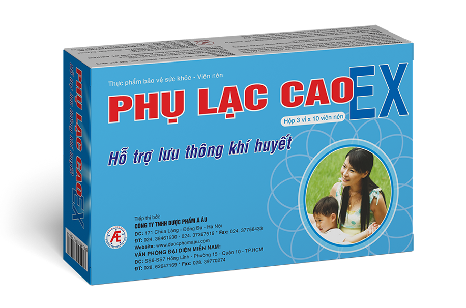 Thực phẩm bảo vệ sức khỏe Phụ Lạc Cao EX - Hỗ trợ lưu thông khí huyết, bổ huyết điều kinh, hỗ trợ giảm triệu chứng: đau bụng kinh, bế kinh, kinh nguyệt không đều. ![]() Thành phần Mỗi viên 850mg chứa: ● N-Acetyl-L-Cysteine 220mg ● Cao Đan Sâm 100mg ● Cao Hương Phụ 90mg ● Cao Đương Quy 65mg ● Cao Nga Truật 50mg ● Cao Sài Hồ Bắc 50mg Phụ liệu: Chất độn microcrystalline cellulose, chất chống đông vón talc và magnesium stearate, chất làm bóng polyvinyl alcohol, chất màu tổng hợp titanium dioxide vừa đủ. Đối tượng sử dụng: Phụ nữ tiền mãn kinh, kinh nguyệt không đều, đau tức vùng bụng, hông trong kinh kỳ. Công dụng: Hỗ trợ lưu thông khí huyết, bổ huyết điều kinh, hỗ trợ giảm triệu chứng: đau bụng kinh, bế kinh, kinh nguyệt không đều. Cách dùng ● Ngày uống 2 lần, mỗi lần 2-3 viên. ● Nên sử dụng một đợt liên tục từ 1-3 tháng. Tiếp thị và phân phối bởi: Công ty TNHH Dược Phẩm Á Âu Á Âu: Địa chỉ an tâm, tin cậy, chất lượng suốt 20 năm Địa chỉ: 171 Chùa Láng - Phường Láng Thượng - Quận Đống Đa - Hà Nội ĐT: 024.38461530 - 028.62647169 Số GPQC: 01303/2019/ATTP-XNQC *Thực phẩm này không phải là thuốc và không có tác dụng thay thế thuốc chữa bệnh. *Sản phẩm có bán tại các nhà thuốc trên toàn quốc. |