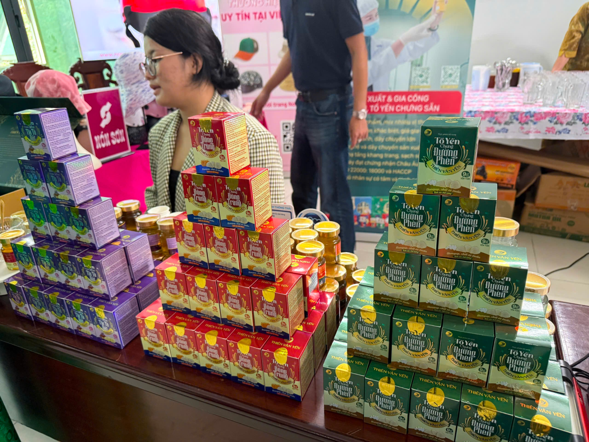 Hội thảo còn có khu trưng bày sản phẩm thật, thương hiệu uy tín được bố trí để đại biểu trải nghiệm trực tiếp, quan sát tiêu chí phân biệt hàng chính hãng – hàng giả theo từng nhóm ngành. Đây cũng là không gian kết nối thực tế giữa cơ quan quản lý Nhà nước – doanh nghiệp – người tiêu dùng, giúp chuẩn hóa nhận thức và lan tỏa thực hành mua sắm an toàn. Tại gian hàng, có các sản phẩm chính hãng của các thương hiệu như Nón Sơn, VN Royal, Yến sào Ban Mai., NPOil.