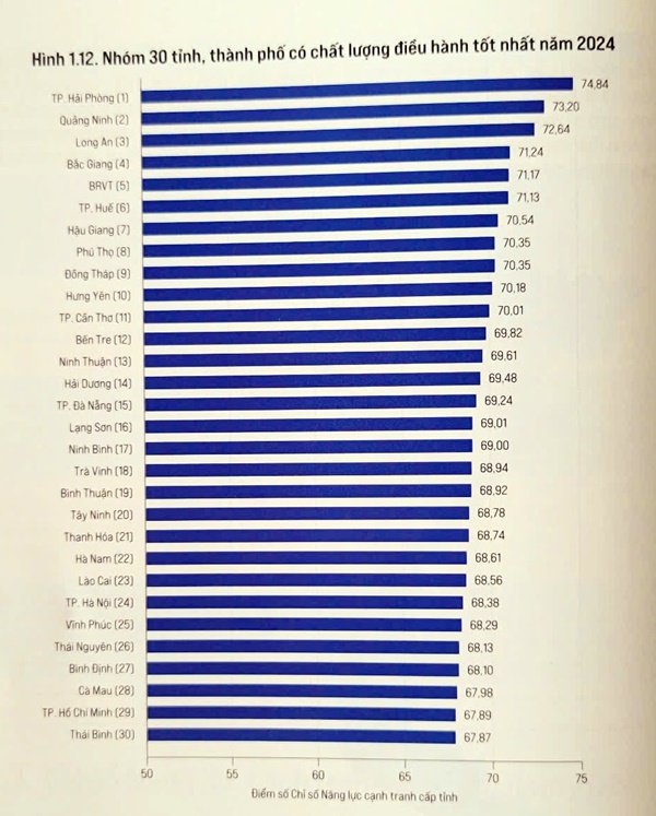 Báo cáo Chỉ số PCI năm 2024 do Liên đoàn Thương mại và Công nghiệp Việt Nam (VCCI) công bố hôm nay 6/5 tại Hà Nội cho thấy, 5 vị trí dẫn đầu cả nước lần lượt thuộc về Hải Phòng, Quảng Ninh, Long An, Bắc Giang và Bà Rịa - Vũng Tàu.