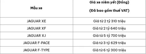Bảng giá xe ô tô hãng Jaguar mới nhất tháng 10/2025: