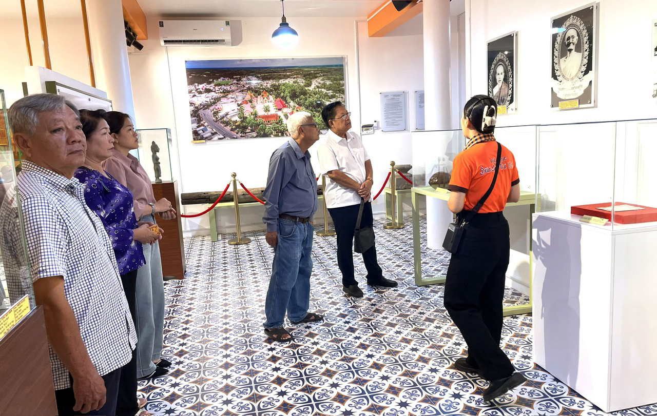 Thuyết minh viên Bảo tàng dừa sáp Trà Vinh giới thiệu về bảo tàng cho du khách