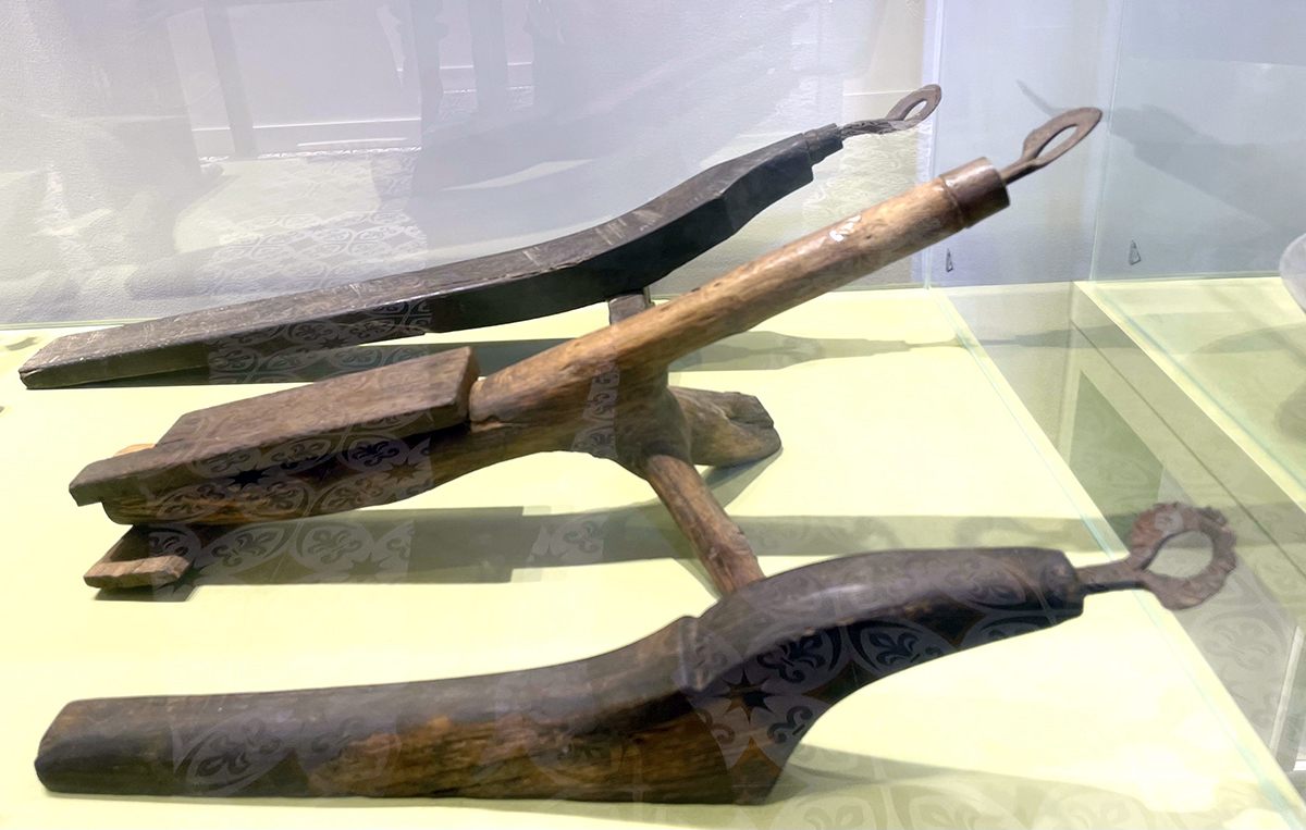 Bàn nạo dừa truyền thống miền Tây Nam Bộ, được trưng bày tại Bảo tàng dừa sáp Trà Vinh