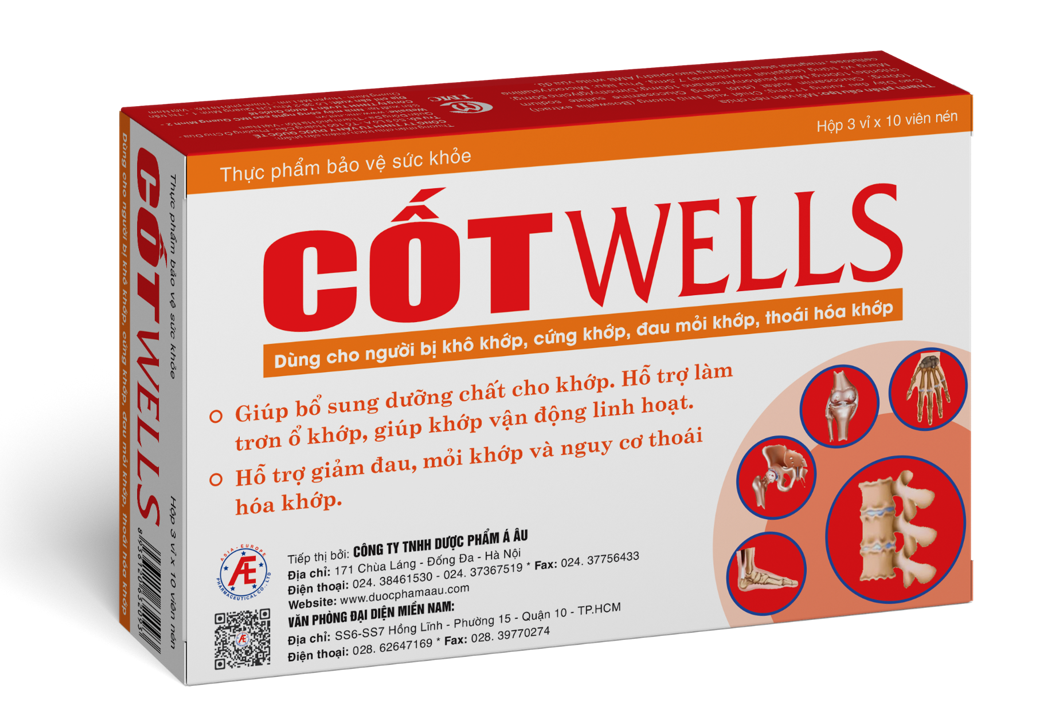 TPBVSK CốtWells - Dùng cho người bị khô khớp, cứng khớp, đau mỏi khớp ![]() Với thành phần chính là màng vỏ trứng, TPBVSK CốtWells hỗ trợ làm trơn ổ khớp, giúp khớp vận động linh hoạt. Hỗ trợ giảm đau, mỏi khớp và nguy cơ thoái hóa khớp. Sản phẩm dùng cho: ● Người bị khô khớp, cứng khớp, đau mỏi khớp. ● Người thoái hóa khớp, người lao động nặng nhọc nguy cơ gây thoái hóa khớp. Hướng dẫn sử dụng ● Uống 4 viên/ngày, chia 2 lần ● Nên uống trong bữa ăn hoặc sau khi ăn 1 giờ Tiếp thị và phân phối bởi: Công ty TNHH Dược Phẩm Á Âu Á Âu: Địa chỉ an tâm, tin cậy, chất lượng suốt 20 năm Địa chỉ: Số 171 Chùa Láng - Phường Láng Thượng - Quận Đống Đa - Hà Nội ĐT: 024.38461530 - 028.62647169 Số GPQC: 2043/2019/ATTP-XNQC *Thực phẩm này không phải là thuốc và không có tác dụng thay thế thuốc chữa bệnh. *Sản phẩm có bán tại các nhà thuốc trên toàn quốc. |