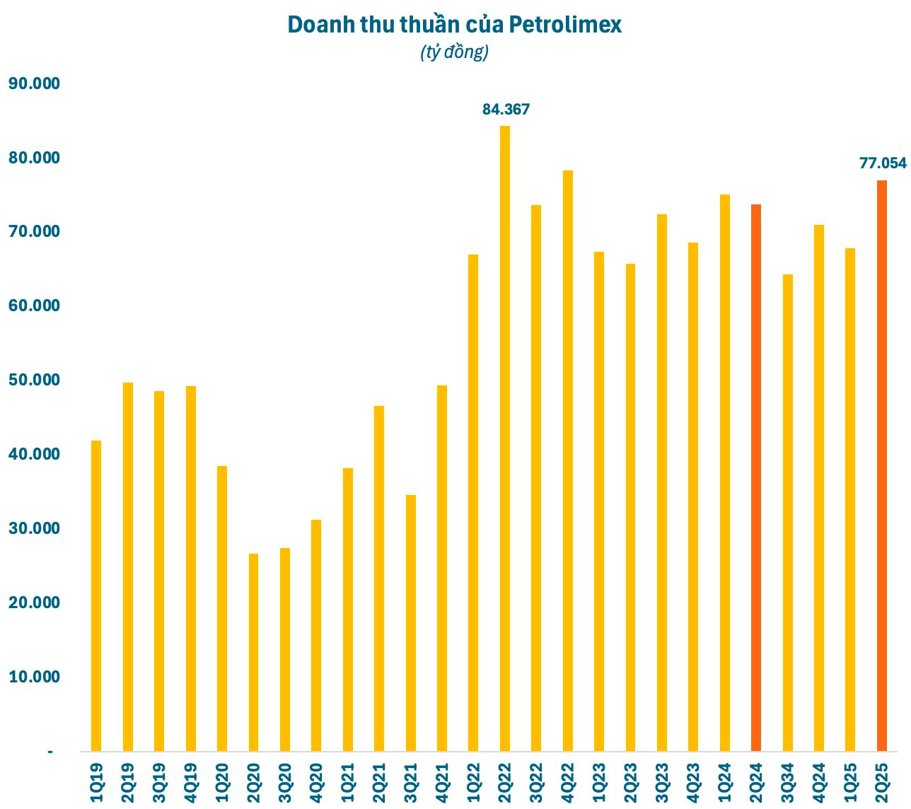 Tập đoàn Xăng dầu Việt Nam (Petrolimex - mã PLX) vừa công bố báo cáo tài chính quý 2 với doanh thu thuần đạt hơn 77.000 tỷ đồng, tăng nhẹ gần 5% so với cùng kỳ 2024 và là mức cao nhất kể từ quý 4/2022. Ước tính bình quân mỗi ngày trong quý 2 vừa qua, doanh nghiệp bán lẻ xăng dầu lớn nhất Việt Nam thu khoảng 850 tỷ đồng.