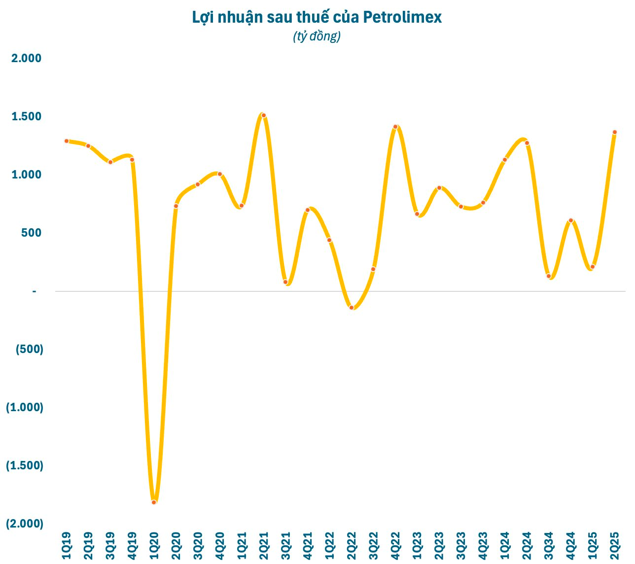 Trong quý 2, lợi nhuận gộp của Petrolimex đạt 5.134,7 tỷ đồng, tăng 11,5% so với mức 4.605,6 tỷ đồng cùng kỳ, tương ứng biên lợi nhuận gộp tăng từ 6,3% lên 6,7%. Sau khi trừ chi phí, lợi nhuận sau thuế hợp nhất đạt 1.368 tỷ đồng, tăng 6,3% so với cùng kỳ 2024 và là mức cao nhất kể từ quý 4/2022.
