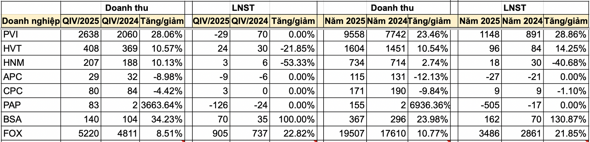 Trái ngược với bức tranh tăng trưởng của FPT Telecom, CTCP Dầu khí Đầu tư khai thác Cảng Phước An (mã chứng khoán PAP) lại ghi nhận khoản lỗ lớn dù doanh thu tăng mạnh. Riêng quý IV/2025, doanh thu thuần đạt gần 83 tỷ đồng, gấp 37 lần so với cùng kỳ năm trước, nhờ sản lượng và dịch vụ khai thác cảng tăng. Tuy nhiên, chi phí cao khiến doanh nghiệp lỗ 125 tỷ đồng, so với mức lỗ 23,8 tỷ đồng cùng kỳ năm 2024.