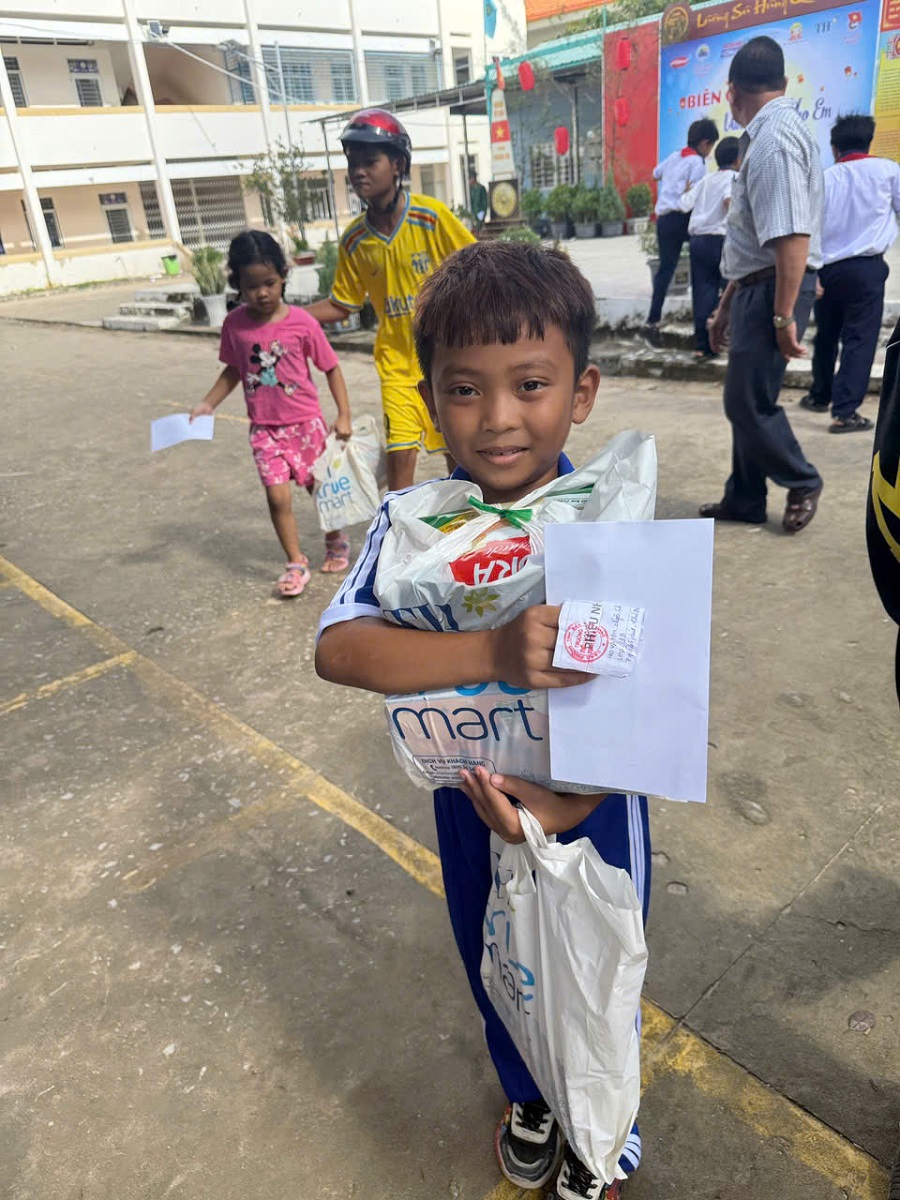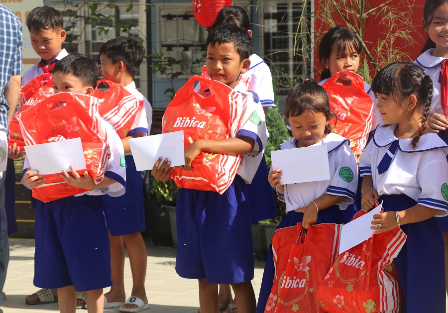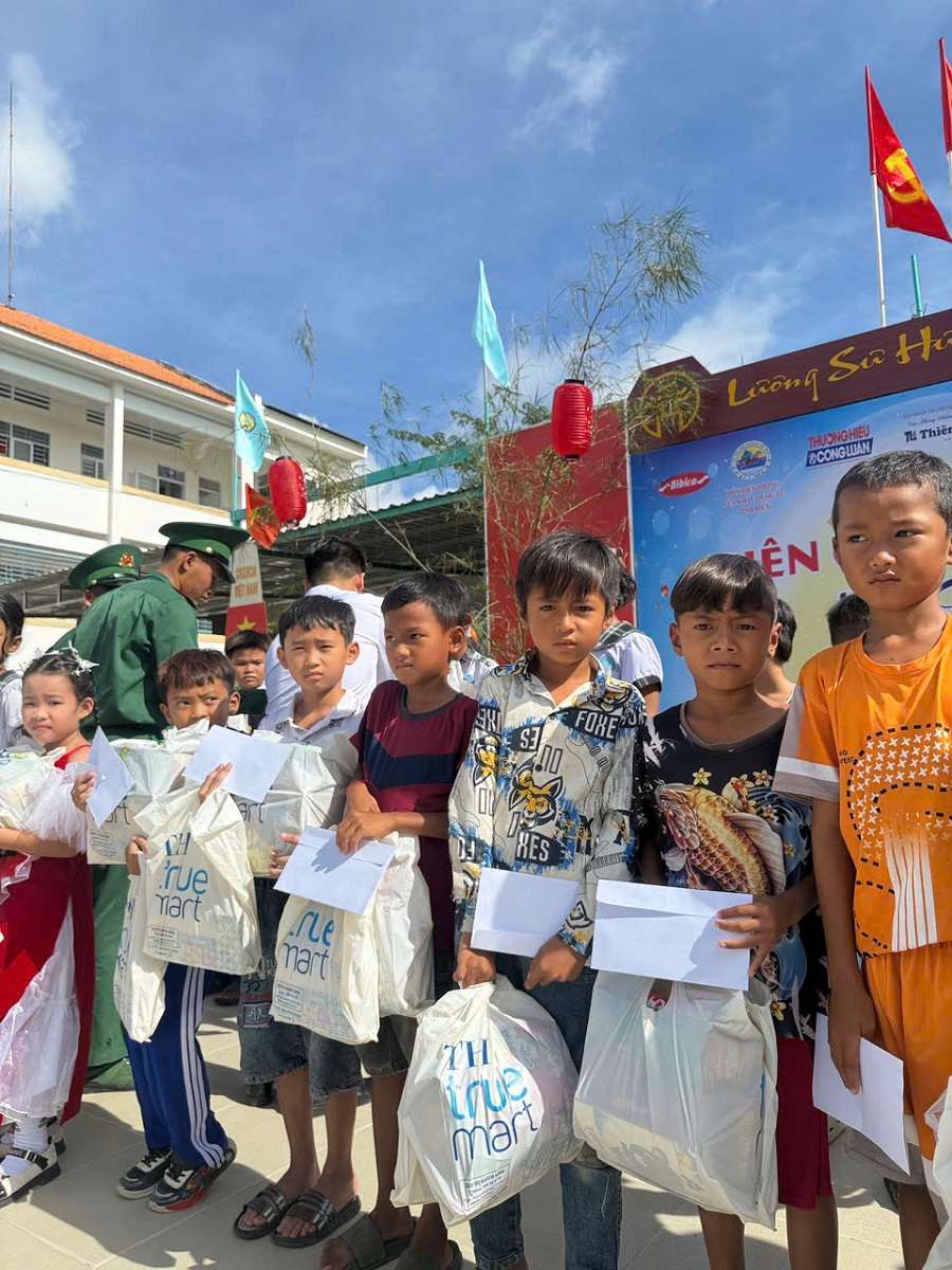 Trong khuôn khổ sự kiện, 230 phần quà Trung thu đã được trao tận tay các em thiếu niên, nhi đồng có hoàn cảnh khó khăn tại các trường TH & THCS Trần Quang Khải và Trung học Cơ sở Lương Thế Vinh trên địa bàn phường Tịnh Biên. Mỗi phần quà được chuẩn bị chu đáo, bao gồm bánh trung thu thơm ngon từ Bibica, hộp sữa dinh dưỡng từ TH True Milk, cùng đồ dùng học tập thiết thực như bút viết từ Thiên Lộc, vở Thuận Tiến... Những món quà ấy không chỉ giúp các em có một cái Tết Trung thu trọn vẹn, mà còn là động viên tinh thần, khuyến khích các em chăm ngoan học giỏi, vượt qua nghịch cảnh, phấn đấu vươn lên trong cuộc sống.