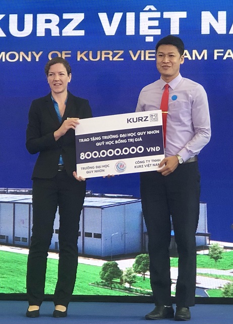 Cũng trong khuôn khổ sự kiện khánh thành nhà máy, lãnh đạo Tập đoàn KURZ và Công ty TNHH KURZ Việt Nam đã tặng quà lưu niệm lãnh đạo tỉnh Bình Định; trao tặng “Quỹ Học bổng KURZ” Trường Đại học Quy Nhơn (trị giá 800 triệu đồng) và huyện Vân Canh, tỉnh Bình Định (trị giá 500 triệu đồng)…