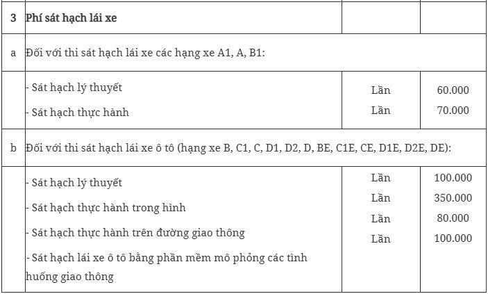 Bộ Tài chính cho biết, theo quy định tại Điều 57 Luật Trật tự, an toàn giao thông đường bộ thì: Hạng xe A1, A2, A3, A4 chuyển thành hạng xe A1, A, B1; hạng xe B1, B2, C, D, E, F chuyển thành hạng xe B, C1, C, D1, D2, D, BE, C1E, CE, D1E, D2E, DE.