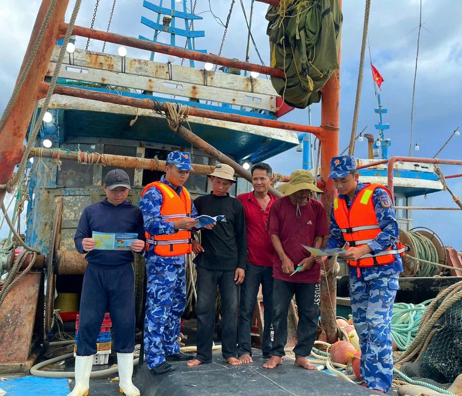 Cùng thời điểm, trên khu vực biển Vũng Áng (Hà Tĩnh), tàu Cảnh sát biển 1012 của Hải đội 102 tổ chức tuyên truyền lưu động, kết hợp phát thanh qua hệ thống thông tin nghiệp vụ và kênh liên lạc VHF, truyền đạt nội dung pháp luật, khuyến cáo an toàn, đồng thời nắm tình hình, tiếp nhận phản ánh, hướng dẫn ngư dân cập nhật thông tin thời tiết, cảnh báo vùng nguy hiểm cho hơn 50 lượt tàu cá đang khai thác hải sản. Hoạt động đã góp phần phòng ngừa vi phạm từ sớm, từ xa, bảo đảm an toàn cho ngư dân và phương tiện.