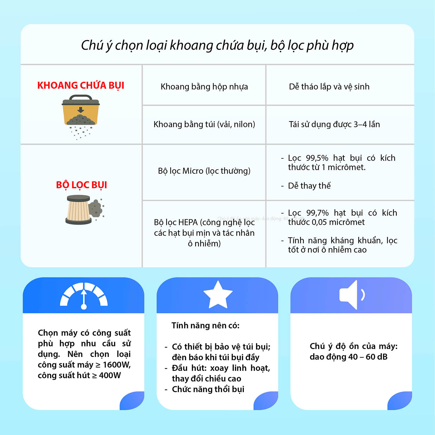 Cách chọn và dùng máy hút bụi vừa sạch nhà, vừa tiết kiệm điện