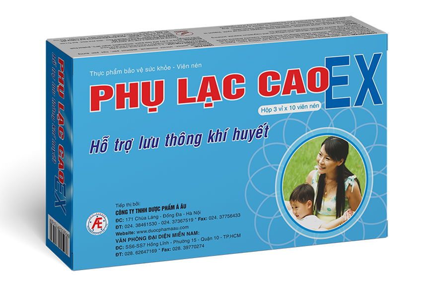 Thực phẩm bảo vệ sức khỏe Phụ Lạc Cao EX - Hỗ trợ lưu thông khí huyết, bổ huyết điều kinh, hỗ trợ giảm triệu chứng: đau bụng kinh, bế kinh, kinh nguyệt không đều. ![]() Thành phần Mỗi viên 850mg chứa: ● N-Acetyl-L-Cysteine 220mg ● Cao Đan Sâm 100mg ● Cao Hương Phụ 90mg ● Cao Đương Quy 65mg ● Cao Nga Truật 50mg ● Cao Sài Hồ Bắc 50mg Phụ liệu: Chất độn microcrystalline cellulose, chất chống đông vón talc và magnesium stearate, chất làm bóng polyvinyl alcohol, chất màu tổng hợp titanium dioxide vừa đủ. Đối tượng sử dụng: Phụ nữ tiền mãn kinh, kinh nguyệt không đều, đau tức vùng bụng, hông trong kinh kỳ. Công dụng: Hỗ trợ lưu thông khí huyết, bổ huyết điều kinh, hỗ trợ giảm triệu chứng: đau bụng kinh, bế kinh, kinh nguyệt không đều. Cách dùng ● Ngày uống 2 lần, mỗi lần 2-3 viên. ● Nên sử dụng một đợt liên tục từ 1-3 tháng. Tiếp thị và phân phối bởi: Công ty TNHH Dược Phẩm Á Âu Á Âu - Địa chỉ an tâm, tin cậy, chất lượng suốt 20 năm Địa chỉ: 171 Chùa Láng - Phường Láng Thượng - Quận Đống Đa - Hà Nội ĐT: 024.38461530 - 028.62647169 Số GPQC: 01303/2019/ATTP-XNQC *Thực phẩm này không phải là thuốc và không có tác dụng thay thế thuốc chữa bệnh. *Sản phẩm có bán tại các nhà thuốc trên toàn quốc. |