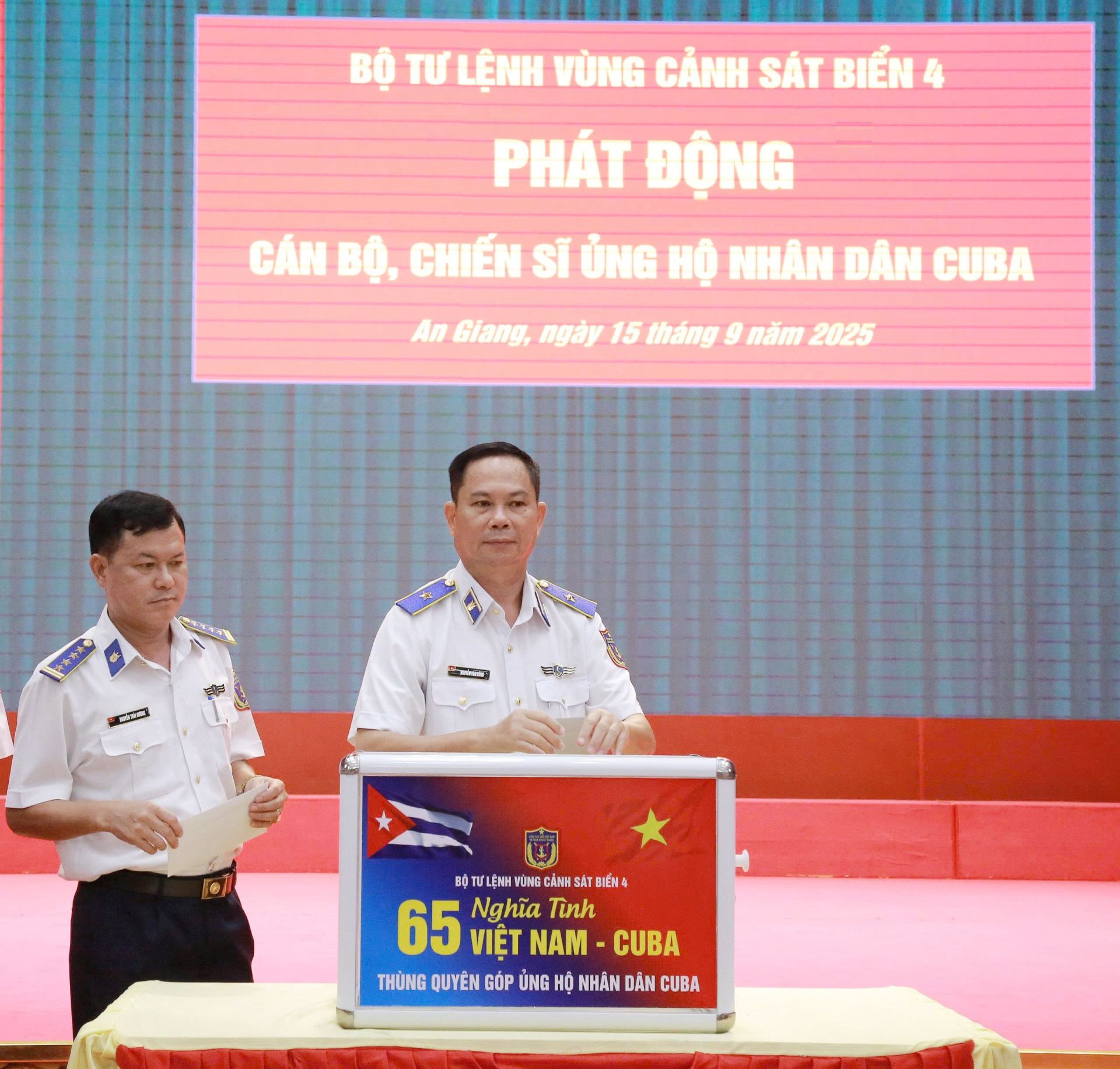 Tại buổi phát động, Thiếu tướng Nguyễn Văn Dũng đã quán triệt toàn văn Lời kêu gọi của Ban chấp hành trung ương Hội Chữ thập đỏ Việt Nam về vận động ủng hộ Nhân dân Cuba; khái quát lại lịch sử, truyền thống, mối quan hệ hữu nghị, đoàn kết đặc biệt, thủy chung, son sắt, là biểu tượng sáng ngời của tình đoàn kết quốc tế giữa hai dân tộc Việt Nam - Cuba. Đồng chí Chính ủy Vùng nhấn mạnh: “Hoạt động này của cán bộ, chiến sĩ BTL Vùng là hết sức thiết thực, ý nghĩa, thể hiện truyền thống “thương người như thể thương thân”, đạo lý thủy chung son sắt, trước sau như một của dân tộc Việt Nam, đồng thời nêu cao tinh thần trách nhiệm quốc tế và trách nhiệm xã hội của BTL Vùng Cảnh sát biển 4”.