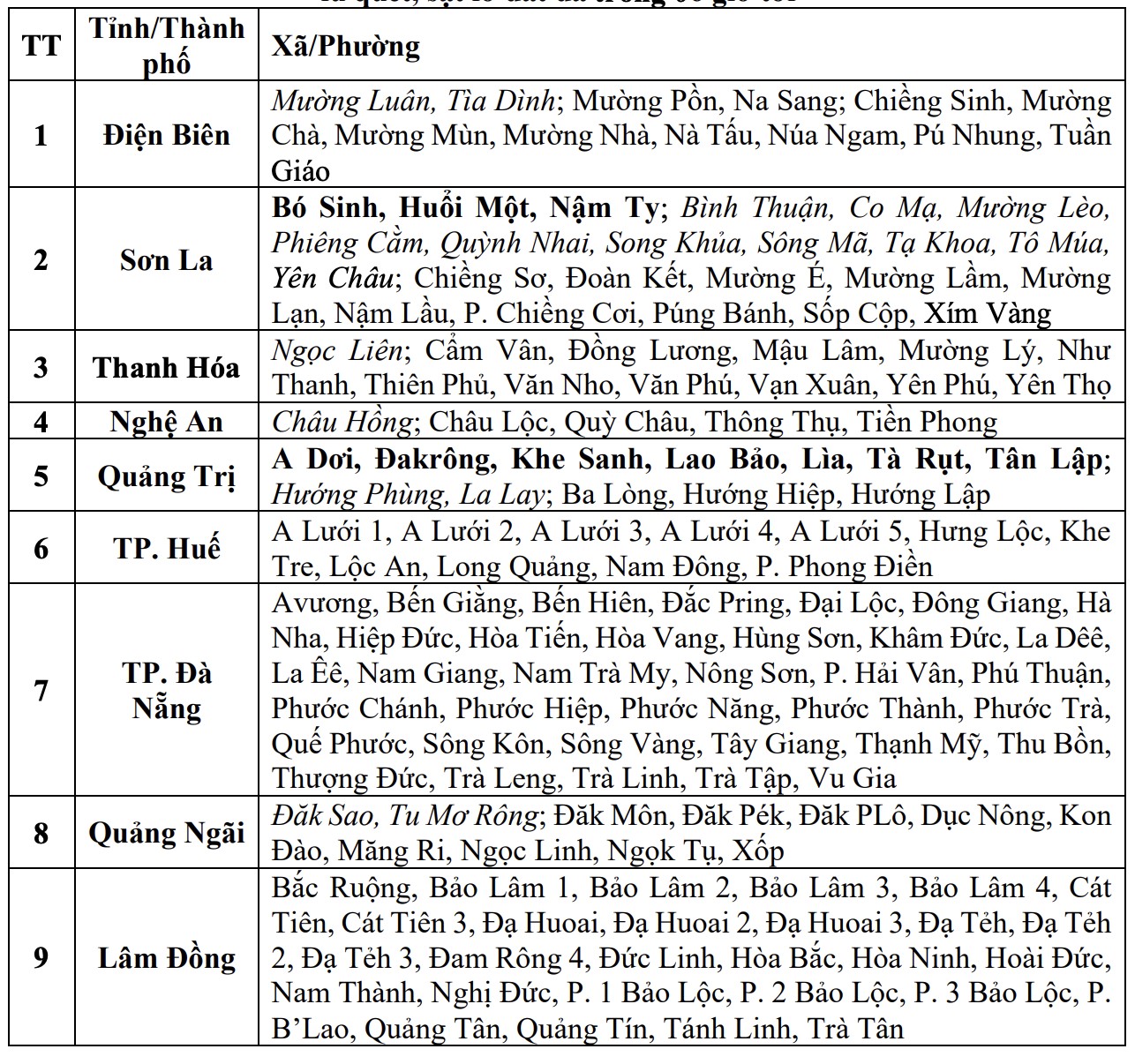 Nguy cơ xảy ra lũ quét trên các sông, suối nhỏ, sạt lở đất trên sườn dốc tại nhiều xã, phường. Riêng tỉnh Thanh Hóa các xã được cảnh báo gồm: Ngọc Liên, Cẩm Vân, Đồng Lương, Mậu Lâm, Mường Lý, Như Thanh, Thiên Phủ, Văn Nho, Văn Phú, Vạn Xuân, Yên Phú, Yên Thọ.