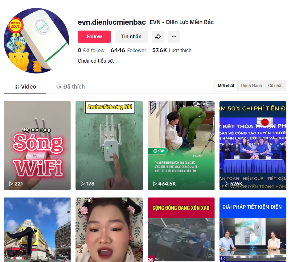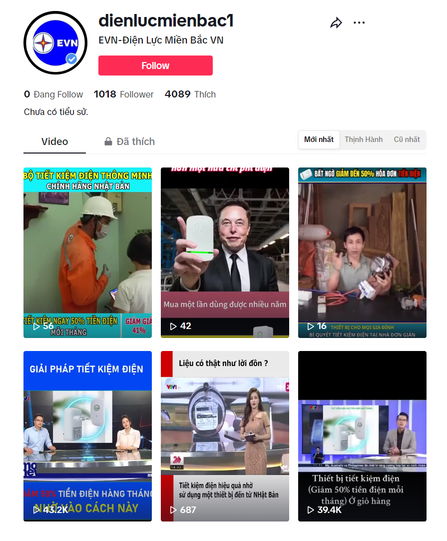 EVNNPC khẳng định: Hiện nay, Tổng công ty chưa xây dựng hoặc vận hành bất kỳ tài khoản nào trên nền tảng TikTok. Tất cả các tài khoản như: “EVN - Điện lực miền Bắc”, “dienlucmienbac1”, “evn.mienbac.vn”... hoặc bất kỳ tài khoản TikTok nào mạo danh EVNNPC đều là giả mạo.