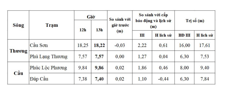+ Tại trạm Cầu Sơn, Phủ Lạng Thương tiếp tục xuống chậm.