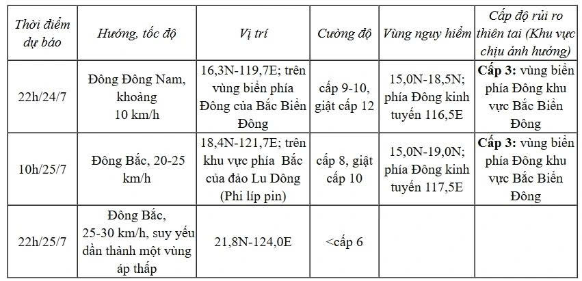 Lưu ý: Tàu thuyền hoạt động trong khu vực nguy hiểm có nguy cơ cao gặp dông, lốc xoáy, gió mạnh và sóng lớn.