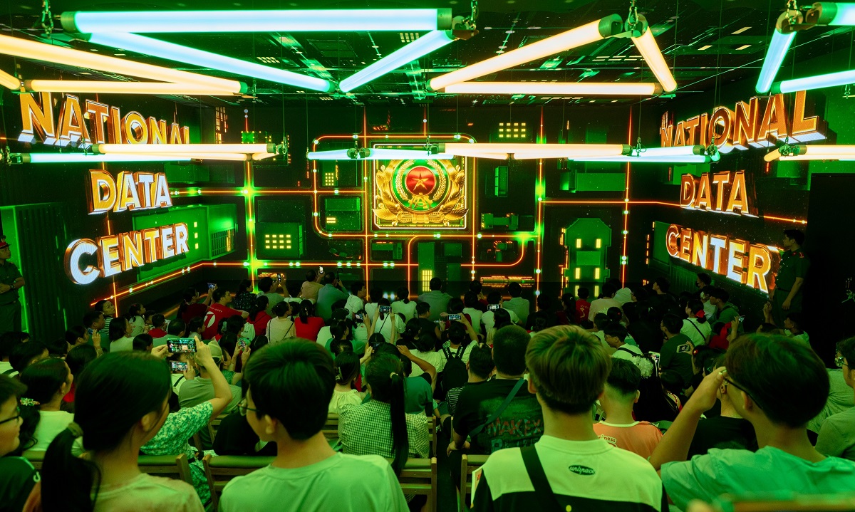Ở sảnh 2, khán giả ken đặc tại khu trung tâm dữ liệu quốc gia theo dõi màn trình diễn 3D mapping và quay lại khoảnh khắc đặc biệt về loạt thông tin thú vị về đất nước qua thời gian. Hiệu ứng ánh sáng kết hợp âm thanh và hình ảnh tạo nên trải nghiệm thị giác sống động, mang đến cảm giác “như đang sống trong không gian ấy”, nâng cao tính tương tác và xúc cảm cho người xem.