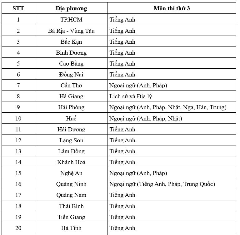 Chi tiết môn thi thứ ba vào lớp 10 năm học 2025-2026 của 63 tỉnh thành như sau: