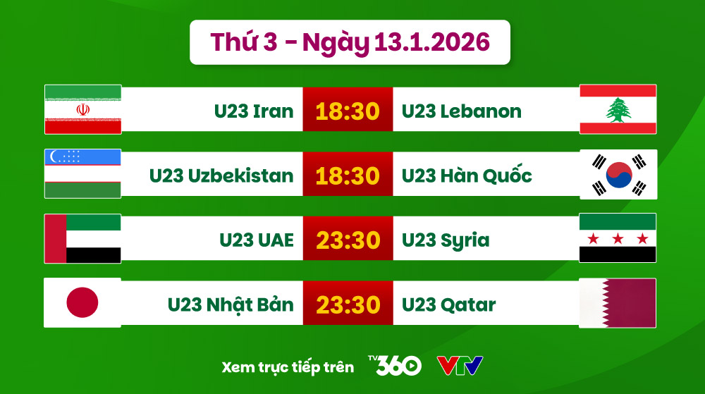 Ngoài trận đấu của U23 Việt Nam, vòng tứ kết U23 châu Á 2026 sẽ còn 3 trận đấu nữa. Trận tứ kết 1 diễn ra lúc 18h30 ngày 16/1 được xác định là màn so tài giữa Nhật Bản và Jordan. Các trận tứ kết 3 và 4 của giải U23 châu Á 2026 sẽ diễn ra vào ngày 17/1.