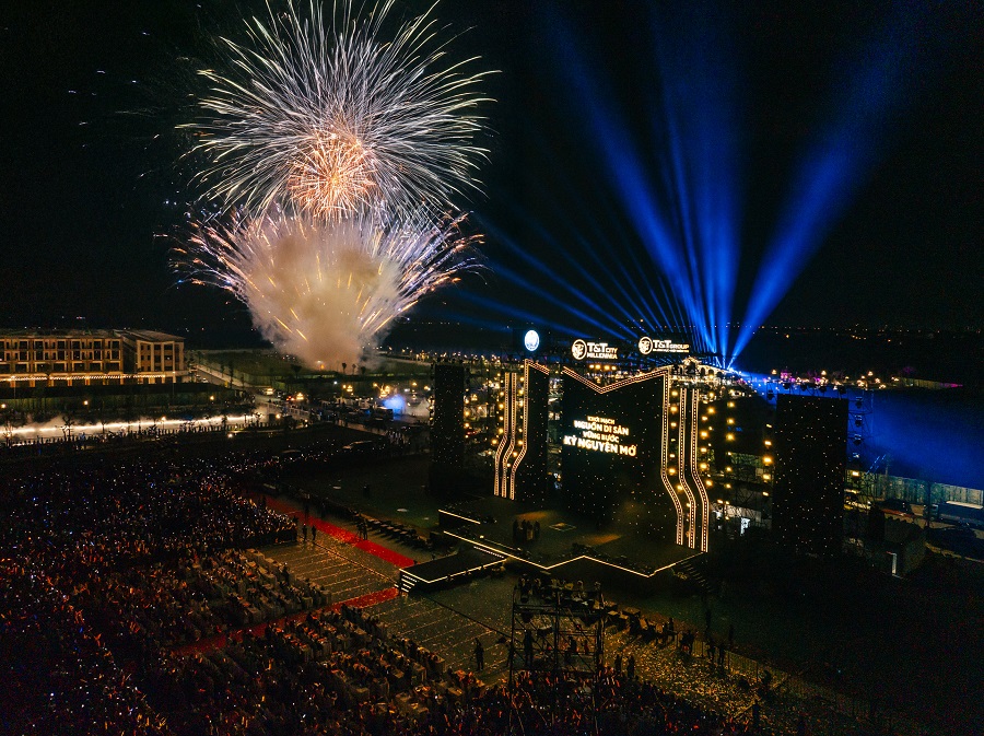 Bữa “đại tiệc” của ánh sáng và công nghệ bùng nổ cao trào khi pháo hoa vẽ lên nền trời Cần Giuộc. Cả Thành phố Thiên niên kỷ T&T City Millennia bừng sáng, sẵn sàng bước vào Kỷ nguyên mới của cả đất nước.