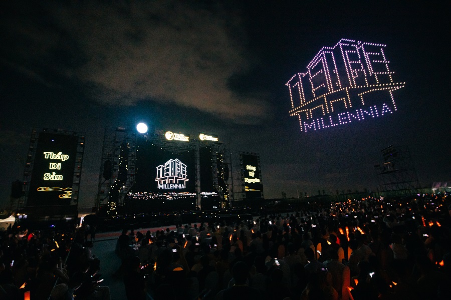 Tối 9/8, Đại nhạc hội “Khơi mạch nguồn Ánh sáng – Vững bước Kỷ nguyên mới” đã chính thức diễn ra tại Thành phố Thiên niên kỷ T&T City Millennia. Một trong những màn trình diễn ấn tượng nhất là khi 1.000 drone cùng lúc cất cánh, vẽ nên trên bầu trời đêm Cần Giuộc những biểu tượng đặc biệt.