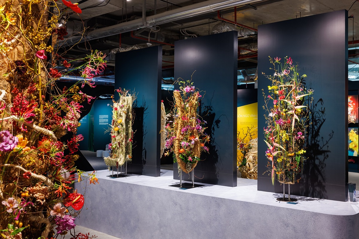 Ấn tượng đầu tiên khi khách mời bước vào triển lãm là không gian trưng bày bộ ảnh Hoa – Ngôn Ngữ Vĩnh Cửu của Chiron Dương. 12 khung hình là 12 lát cắt của ánh sáng, chuyển động và ký ức, tái hiện vẻ đẹp đa chiều của hoa đồng thời khơi gợi những cảm xúc mong manh về sự vĩnh cửu của cuộc sống.