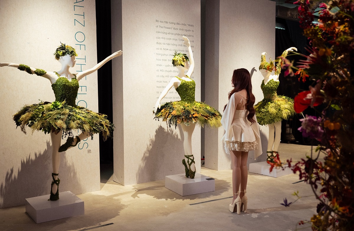 Lấy cảm hứng từ tác phẩm ballet bất hủ của nhà soạn nhạc Tchaikovsky, Waltz of The Flowers tái hiện hình ảnh những vũ công đang uyển chuyển trong một vũ điệu thiên nhiên lãng mạn. Khoác lên mình trang phục chế tác từ rêu, lá và hoa, những bức tượng vô tri bỗng như hóa thân thành linh hồn của thiên nhiên, tinh khôi mà rực rỡ khiến người xem cứ muốn mãi đắm chìm.