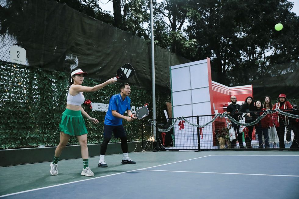 Bên cạnh giải thi đấu giao hữu Pickleball thu hút đông đảo người tham dự, ban tổ chức còn mang đến trải nghiệm văn hoá độc đáo là hội chợ giáng sinh với photobooth check-in hộp quà Noel bắt mắt cùng những gian hàng đa dạng, tràn ngập không khí lễ hội.