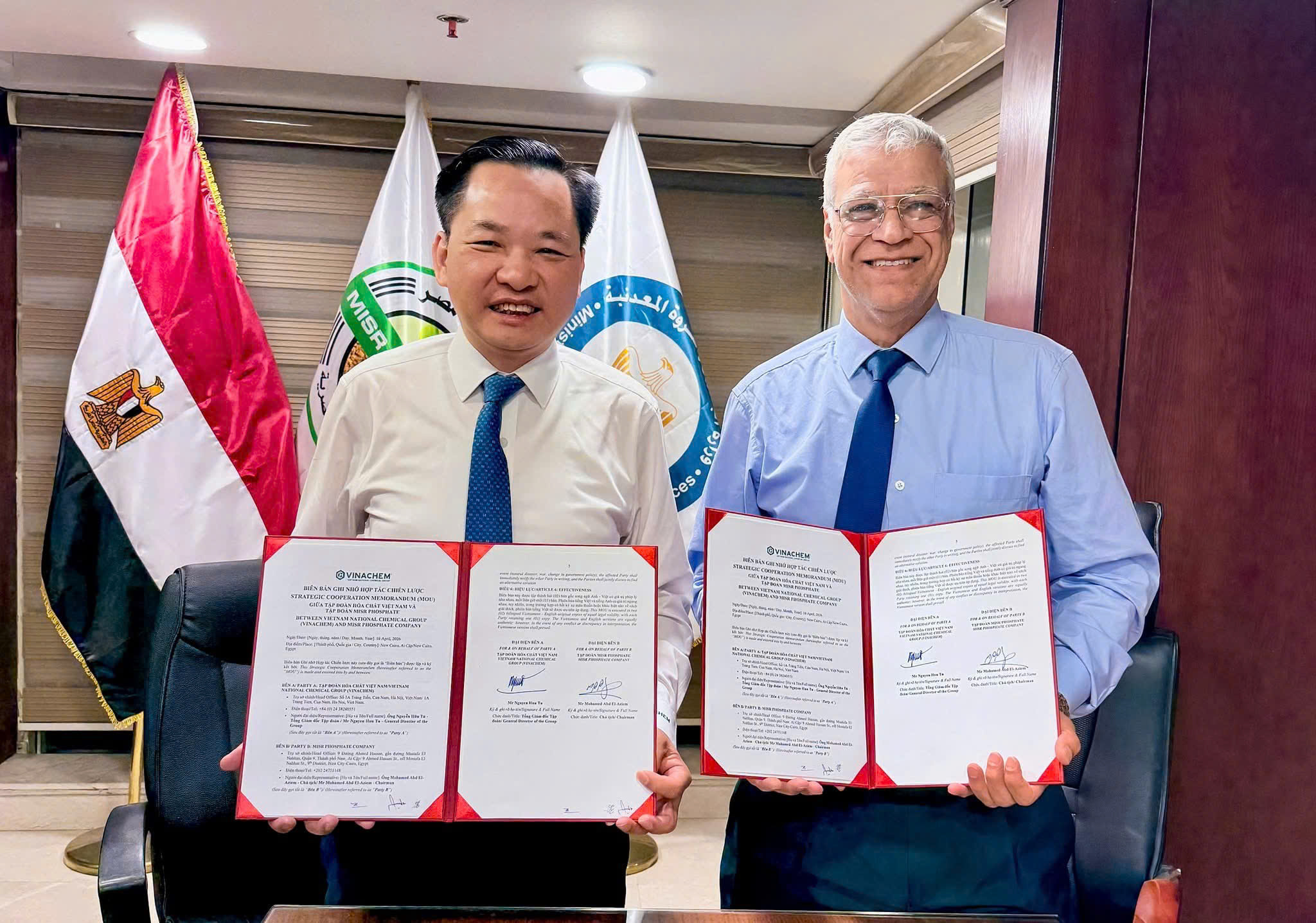 Trên nền tảng khảo sát thực địa, Vinachem đã ký kết Biên bản ghi nhớ hợp tác chiến lược với Misr Phosphate – doanh nghiệp nhà nước lớn nhất Ai Cập trong lĩnh vực khai thác và xuất khẩu quặng phốt phát.