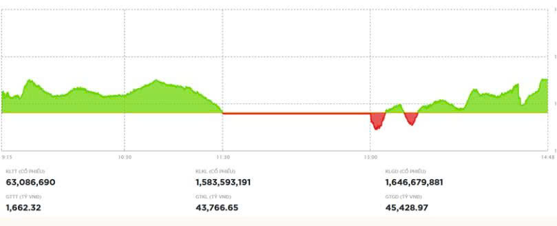 Mặc dù chưa thể chinh phục mốc 1.600 điểm trong phiên hôm qua, thị trường vẫn nối dài chuỗi 6 phiên tăng liên tiếp, với thanh khoản duy trì ở mức cao.