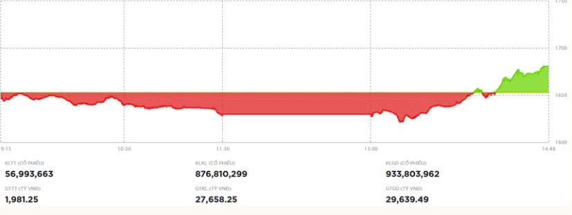 Chỉ số VN-Index theo đó dần hồi phục vượt lên trên tham chiếu, tiếp tục đà tăng vượt 1.680 điểm khi đóng cửa, tương đương tăng gần 30 điểm và biến động trong phiên hôm nay lên tới gần 60 điểm.