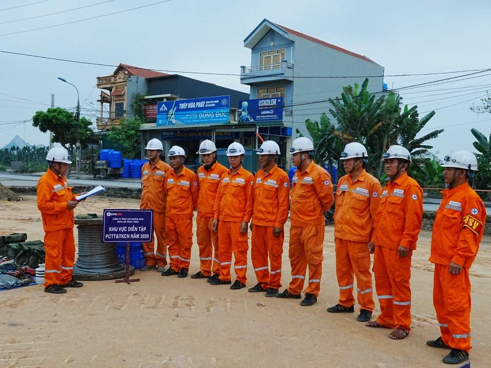 Công ty Điện lực Quảng Ninh (CTĐL Quảng Ninh) xác định đây là một trong những nhiệm vụ trọng tâm năm 2026, nhằm rèn luyện kỹ năng thực tế cho đội ngũ cán bộ, nhân viên, lao động trực tiếp. Tại buổi diễn tập cấp Công ty, công tác chuẩn bị được phân cấp rõ ràng đến từng bộ phận chuyên môn, với sự phối hợp chặt chẽ giữa các phòng Kỹ thuật, Điều độ, An toàn, Công nghệ thông tin và Chuyển đổi số và Xí nghiệp Dịch vụ Điện lực Quảng Ninh cùng các đơn vị trực thuộc như Điện lực Đông Triều, Điện lực Uông Bí, Xí nghiệp lưới điện cao thế. Sự phối hợp đồng bộ giữa các đơn vị giúp huy động tối đa nhân lực, phương tiện và trang thiết bị chuyên dụng phục vụ cho cuộc diễn tập.