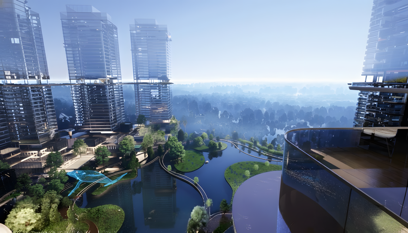 Các tổ hợp kiến trúc trên cao lấy cảm hứng từ hình ảnh biển mây bảng lảng trên đỉnh núi, mở ra một không gian sống nhẹ bẫng, khoáng đạt và gần như tách khỏi nhịp chuyển động của đô thị phía dưới. Nhờ kết cấu mở và nghệ thuật ánh sáng được xử lý tinh tế, nơi đây mang đến cảm giác như một xứ sở thần tiên giữa tầng không.