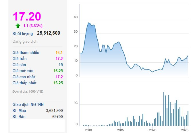 Tính từ đầu năm 2025, thị giá HAG đã tăng 43%, vốn hóa của Hoàng Anh Gia Lai cũng theo đó tăng gần 5.500 tỷ lên xấp xỉ 18.200 tỷ đồng.