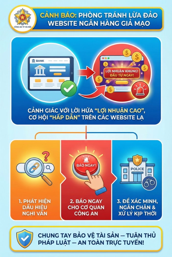 Để phòng tránh lừa đảo, Công an thành phố Hà Nội đề nghị người dân cần cảnh giác khi tham gia các website, sàn giao dịch điện tử, đặc biệt là các sàn quảng cáo, hứa hẹn lợi nhuận cao hoặc cơ hội đầu tư hấp dẫn. Nếu phát hiện dấu hiệu lừa đảo, người dân cần báo ngay cho cơ quan Công an để nhanh chóng xác minh, ngăn chặn và xử lý các đối tượng vi phạm theo quy định của pháp luật.