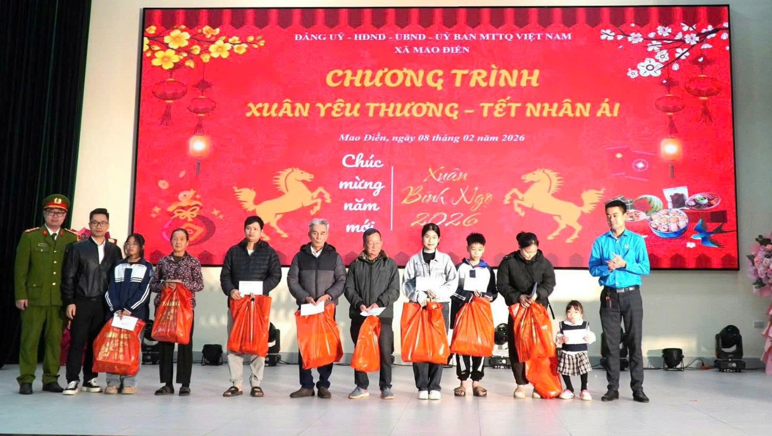 Việc trao quà được thực hiện công khai, đúng đối tượng, thể hiện sự quan tâm, chia sẻ của lực lượng Công an xã Mao Điền và các nhà hảo tâm đối với đời sống của Nhân dân trên địa bàn, góp phần củng cố niềm tin của người dân đối với Đảng, Nhà nước và lực lượng Công an nhân dân.