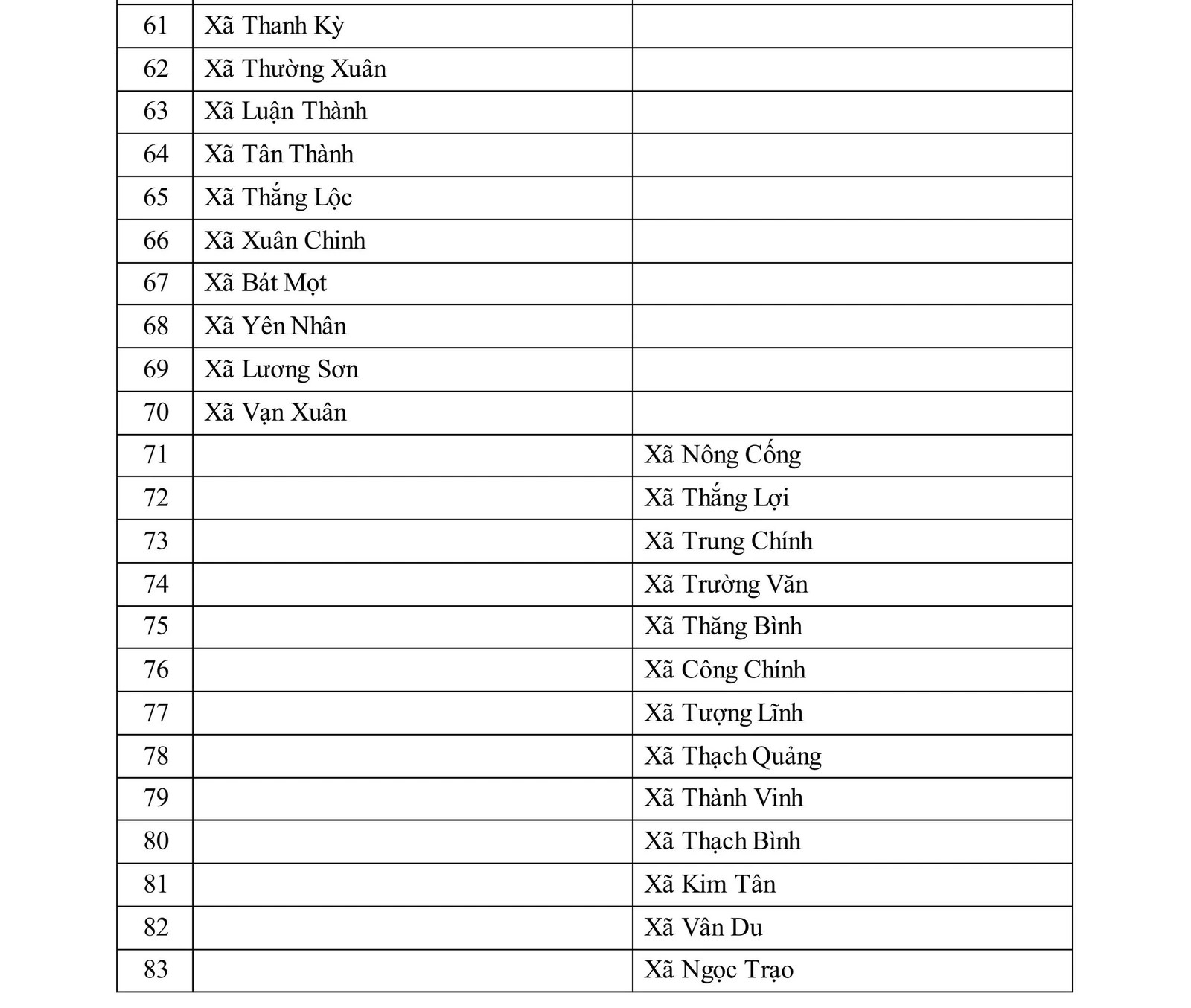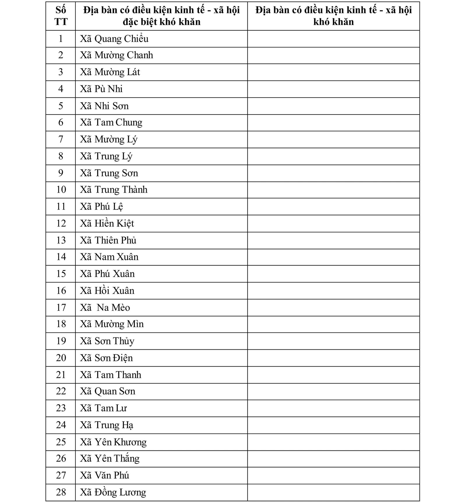 Theo danh mục ban hành kèm theo Quyết định, địa bàn ưu đãi đầu tư cấp xã của tỉnh Thanh Hóa gồm 70 xã có điều kiện kinh tế - xã hội đặc biệt khó khăn và 13 xã có điều kiện kinh tế - xã hội khó khăn. Cụ thể như sau:
