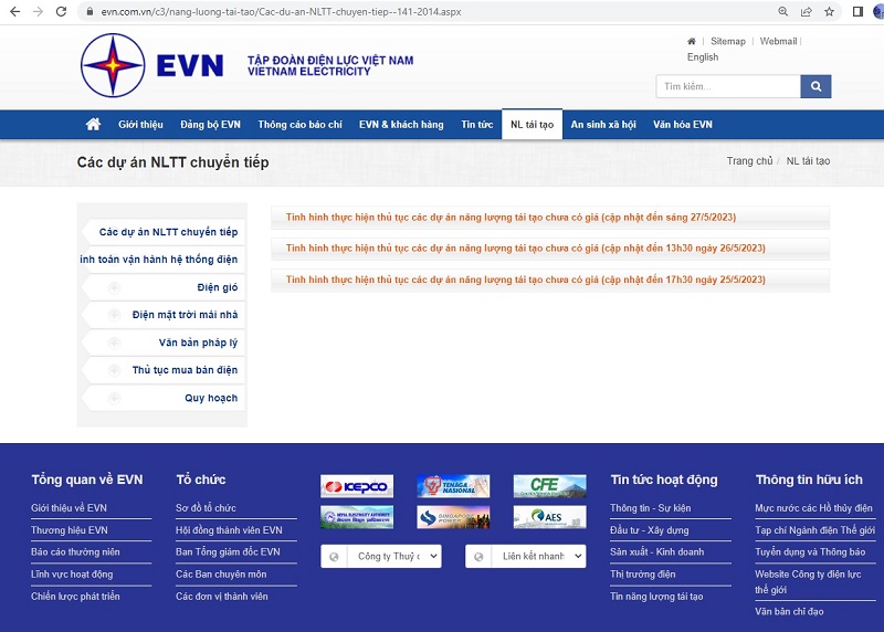 Nhận thấy đây là vấn đề được theo dõi, không chỉ đối với các nhà đầu tư, mà cũng được dư luận hết sức quan tâm, với tinh thần công khai, minh bạch, Tập đoàn Điện lực Việt Nam (EVN) đã đăng tải công khai và cập nhật thường xuyên thông tin tình hình thực hiện thủ tục các dự án năng lượng tái tạo chuyển tiếp trên trang thông tin điện tử của Tập đoàn tại địa chỉ: https://www.evn.com.vn/c3/nang-luong-tai-tao/Cac-du-an-NLTT-chuyen-tiep--141-2014.aspx. Chuyên mục về nội dung thông tin này, cũng được thể hiện nổi bật, dễ nhận biết, dễ truy cập ngay trên trang chủ của web EVN.