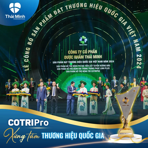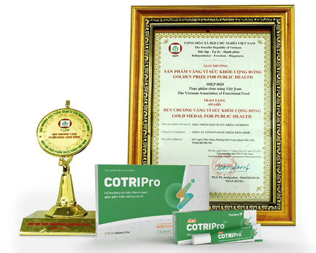 COTRIPro là giải pháp hỗ trợ điều trị bệnh trĩ hiệu quả với bộ đôi viên uống và gel bôi. Sản phẩm đã được Bộ công thương công nhận là Thương hiệu Quốc gia và nhận được nhiều giải thưởng uy tín như “Sản phẩm vàng vì sức khỏe cộng đồng” từ Hiệp hội Thực phẩm chức năng Việt Nam, cùng các tiêu chuẩn GMP và ISO. Qua đó khẳng định chất lượng và hiệu quả vượt trội của COTRIPro trong bảo vệ sức khỏe, trở thành lựa chọn đáng tin cậy cho người bệnh trĩ tại Việt Nam.