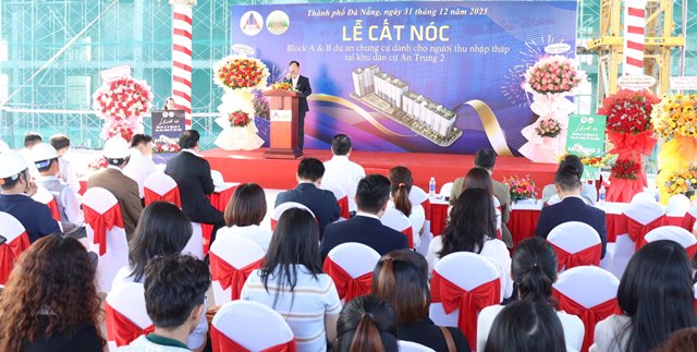 Báo cáo tại buổi lễ, ông Đàm Quang Tuấn - Chủ tịch HĐQT Liên doanh Công ty CP Đức Mạnh – Công ty CP Đầu tư và Xây dựng 579 cho biết: Dự án khu chung cư cho người thu nhập thấp tại Khu dân cư An Trung 2 do Liên doanh làm Chủ đầu tư có quy mô gồm 3 block với tổng số 957 căn hộ, trong đó, block C cao 12 tầng đã hoàn thành xây dựng, bàn giao đưa vào sử dụng từ năm 2019. Hai block còn lại là block B cao 15 tầng nổi đã hoàn thành thành thi công cất nóc vào tháng 11-2025, block A cao 18 tầng nổi thi công cất nóc vào ngày hôm nay.