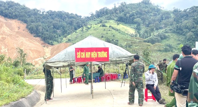 Thượng tá Trần Kim Tuấn - Phó chỉ huy trưởng Bộ CHQS TP. Đà Nẵng cho biết, đã huy động hơn 150 cán bộ, chiến sĩ thuộc Khu vực phòng thủ 2 - Thạnh Mỹ, dân quân, bộ đội biên phòng và phương tiện cơ giới. Bộ CHQS thành phố thiết lập 2 vị trí chỉ huy, cấm người dân vào khu vực sạt lở, bố trí nhiều xe múc sẵn sàng cơ động. Tuy nhiên, hiện trường có bùn đất quá nhão, gây khó khăn cho lực lượng tiếp cận.