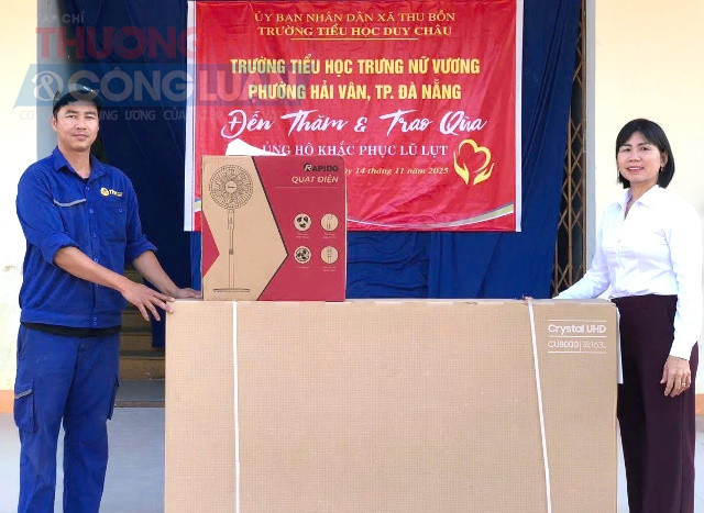 Ngày 14/11, nhà trường đã đến Trường Tiểu học Duy Châu, xã Thu Bồn để trao tận tay những món quà yêu thương của thầy cô và học sinh Trường Tiểu học Trưng Nữ Vương, bao gồm: 1 tivi 65 inch, 2 máy quạt, cùng toàn bộ vật phẩm do phụ huynh và học sinh quyên góp.
