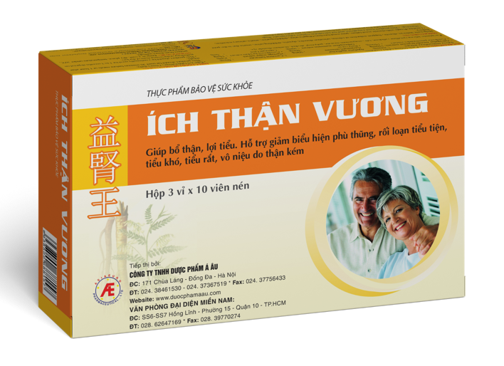 Thực phẩm bảo vệ sức khỏe Ích Thận Vương ![]() Thành phần: Cao dành dành, cao đan sâm, cao hoàng kỳ, trầm hương, cao râu mèo, cao mã đề, bạch phục linh, cao linh chi đỏ, L-Carnitine fumarate, Coenzyme Q10. Công dụng: ● Giúp bổ thận, lợi tiểu. ● Hỗ trợ giảm biểu hiện phù thũng, rối loạn tiểu tiện, tiểu khó, tiểu rắt, vô niệu do thận kém. Đối tượng sử dụng: Người bị suy thận, chức năng thận kém biểu hiện: Tiểu ít, tiểu rắt, vô niệu, bí tiểu. Cách dùng ● Ngày uống 2 - 3 viên/lần, 2 lần/ngày. ● Nên uống trước bữa ăn 30 phút hoặc sau khi ăn 1 giờ. ● Nên sử dụng liên tục một đợt từ 1 - 3 tháng tùy theo bệnh lý hoặc theo hướng dẫn của bác sĩ. Tiếp thị và phân phối bởi: Công ty TNHH Dược Phẩm Á Âu Á Âu: Địa chỉ an tâm, tin cậy, chất lượng suốt 20 năm Địa chỉ: 171 Chùa Láng - Phường Láng Thượng - Quận Đống Đa - Hà Nội ĐT: 024.38461530 - 028.62647169 Số GPQC: 01502/2019/ATTP-XNQC *Thực phẩm này không phải là thuốc và không có tác dụng thay thế thuốc chữa bệnh. * Sản phẩm được bán tại các nhà thuốc trên toàn quốc. |