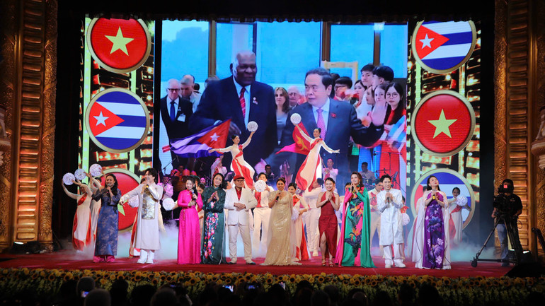 Khép lại đêm nghệ thuật, những giai điệu về Hà Nội - “Thành phố vì hòa bình” và ca khúc ca ngợi tình hữu nghị Việt Nam - Cuba vang lên trong không khí trang trọng, ấm áp. Chương trình không chỉ tôn vinh mối quan hệ truyền thống quý báu giữa hai nước mà còn góp phần thắt chặt hơn nữa tình đoàn kết, hướng tới tương lai hợp tác bền vững, vì hòa bình và thịnh vượng chung.