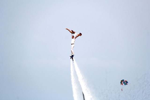 Hàng ngàn du khách vây kín bãi biển để xem những màn nhào lộn trên không bằng ván nước phản lực.