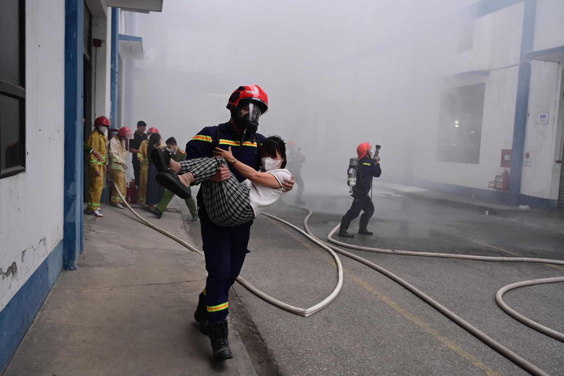 Sau khi nhận được tin báo cháy, Ban giám đốc Công ty nhanh chóng có mặt chỉ huy công tác chữa cháy, cứu nạn, cứu hộ, phân công nhiệm vụ cho các nhân viên thực hiện theo quy trình xử lý, đồng thời gọi điện báo lực lượng Cảnh sát PCCC theo số máy 114. Ngay sau đó, Đội Chữa cháy và Cứu nạn cứu hộ khu vực 1 và lực lượng PCCC và CNCH phường An Biên có mặt tại hiện trường phối hợp với lực lượng chữa cháy cơ sở và cán bộ, công nhân viên với khoảng 500 người tham gia diễn tập chữa cháy. Sau 15 phút đám cháy được các lực lượng khống chế và dập tắt.