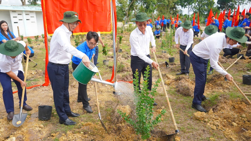 Sau lễ phát động, các đại biểu cùng đông đảo đoàn viên thanh niên thực hiện Chương trình Tết trồng cây “Đời đời nhớ ơn Bác Hồ” năm 2026 tại sân vận động Châu Pha.