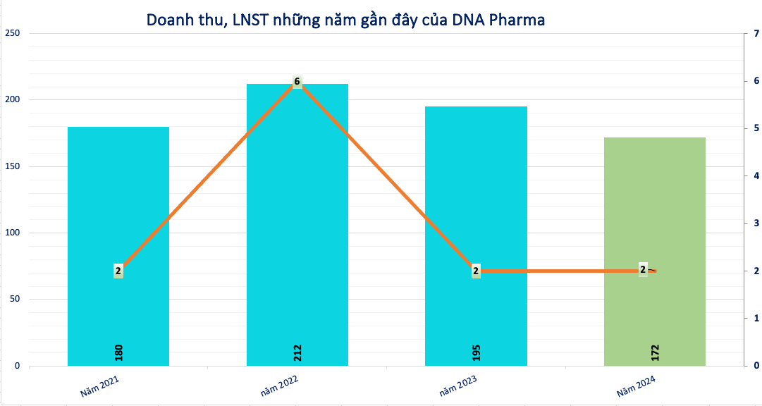 Về kết quả kinh doanh, năm 2024, doanh thu thuần đạt 172 tỷ đồng, giảm 12% so với cùng kỳ. Lãi sau thuế xoay quanh mức 2,3 tỷ đồng.